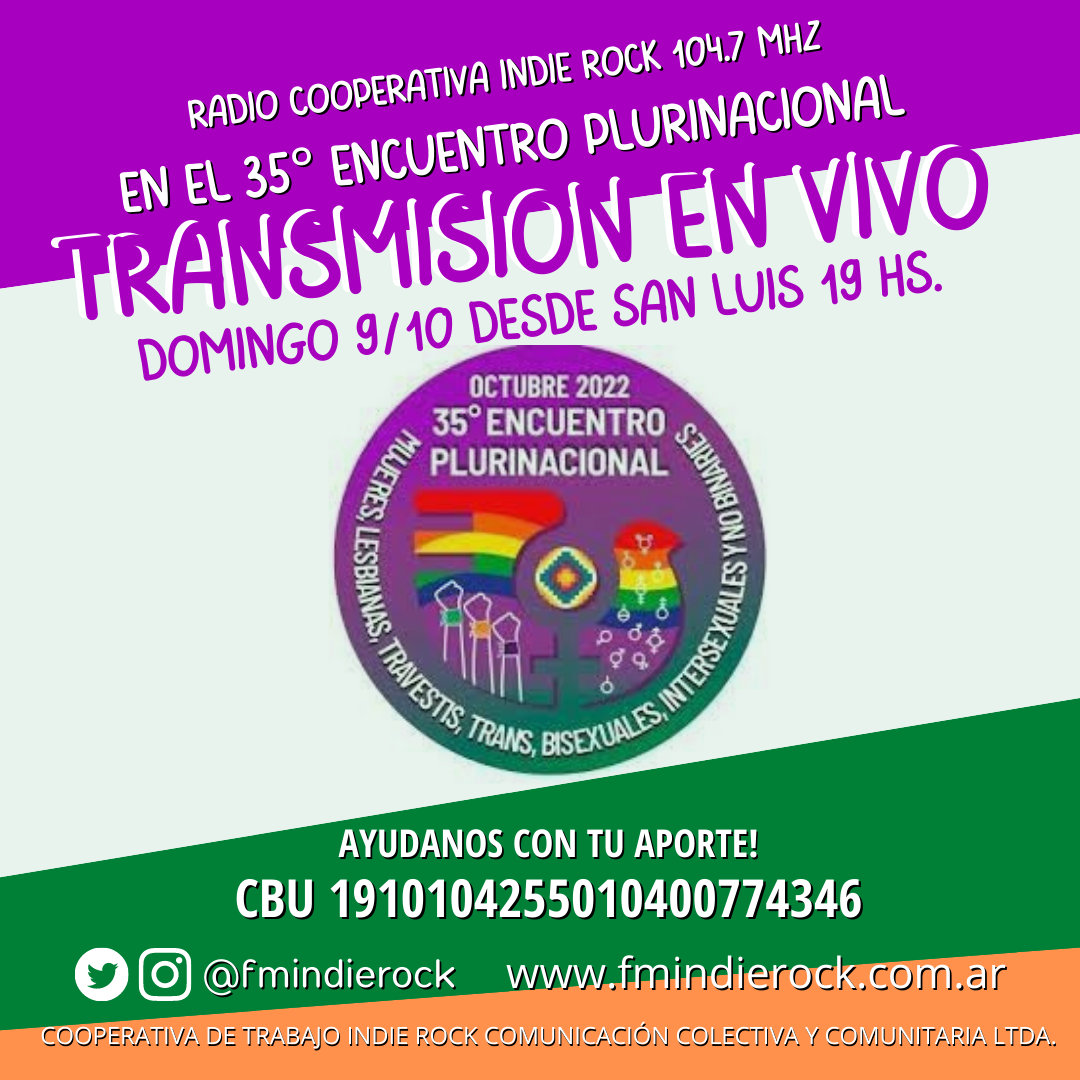 La Radio Cooperativa Indie Rock estará presente en el 35° ENCUENTRO PLURINACIONAL Y CON MUJERES, LESBIANAS, TRANS, TRAVESTIS, INTERSEXUALES, BISEXUALES…