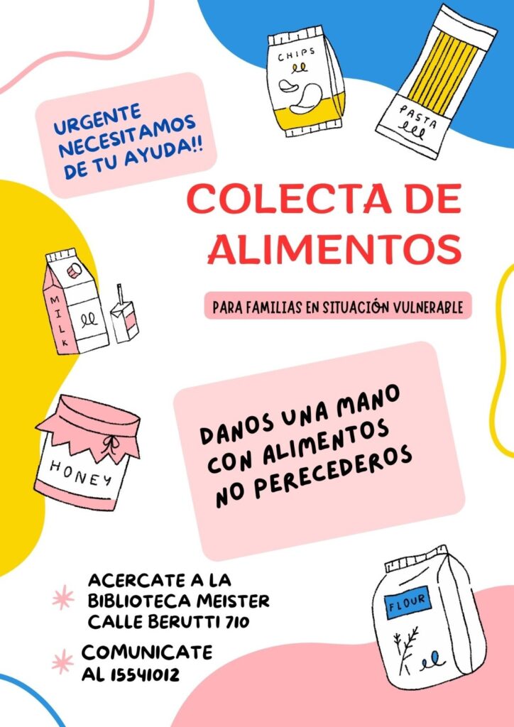 La Biblioteca Barrial Luis Meister esta realizando una colecta de alimentos no perecederos para familias en situación vulnerable. La biblioteca es abierta a toda la comunidad de Lunes a Viernes de 9:00 a 11:00 y de 16:00 a 19:00 Hs. Para mas información, dirijirse a Beruti 710 o comunicarse al 15348492.