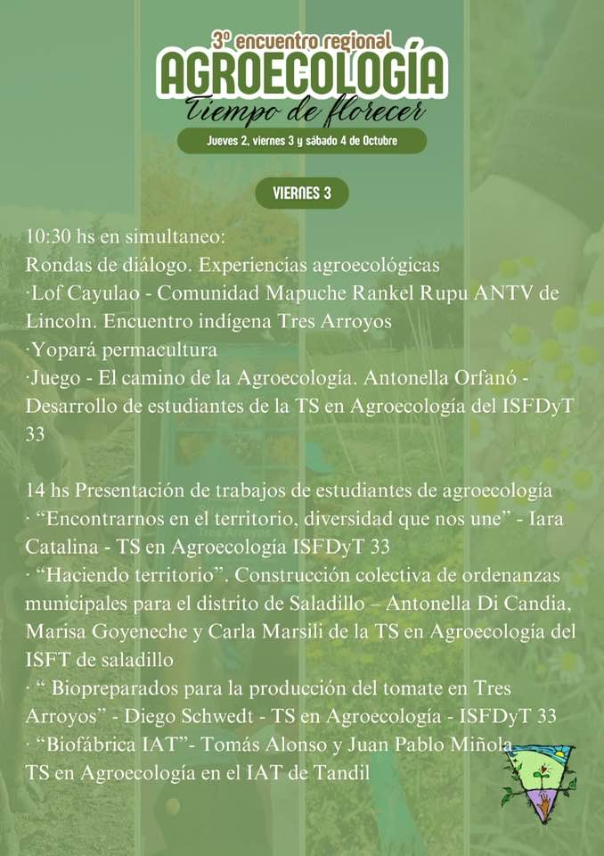 El encuentro se realizará en distintos espacios de la ciudad y está organizado por la Tecnicatura Superior en Agroecología junto al Instituto Superior de Formación Docente Técnica Nº33.